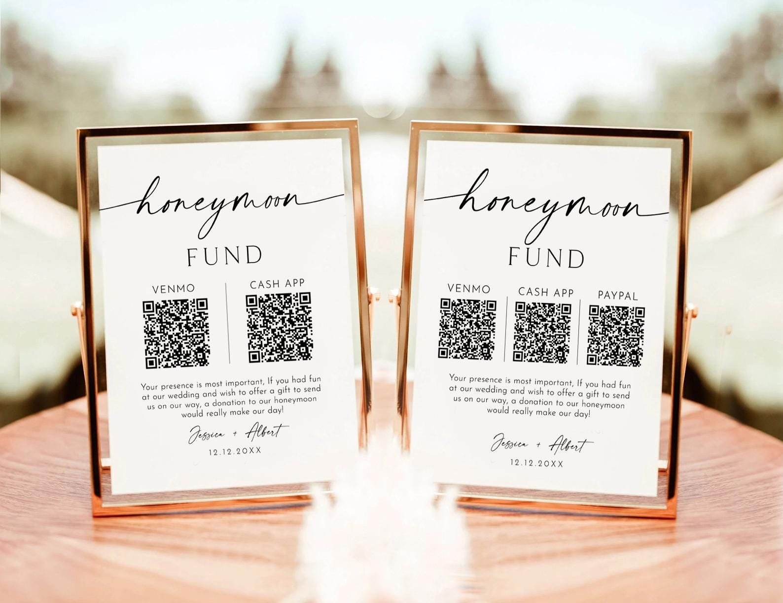 • Reusable & Sustainable: Unlike traditional envelopes or cash boxes, this QR code sign is a paperless, eco-friendly solution to honeymoon gifting.